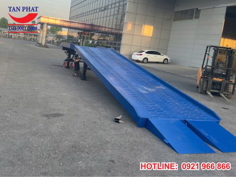 Trước khi bàn giao, cầu dẫn đã được lắp đặt hoàn chỉnh và kiểm tra tải trọng thực tế nhằm đảm bảo an toàn và hiệu quả sử dụng cho khách hàng. Cầu dẫn 12 tấn hoạt động ổn định, không rung lắc, đảm bảo an toàn tuyệt đối khi sử dụng.