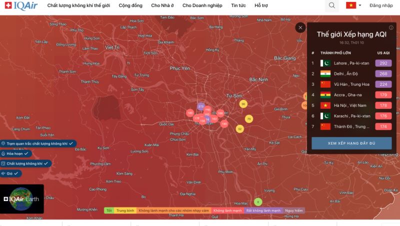 Việt Nam là một trong 10 quốc gia có chất lượng không khí kém và mức độ ô nhiễm đang tăng cao.